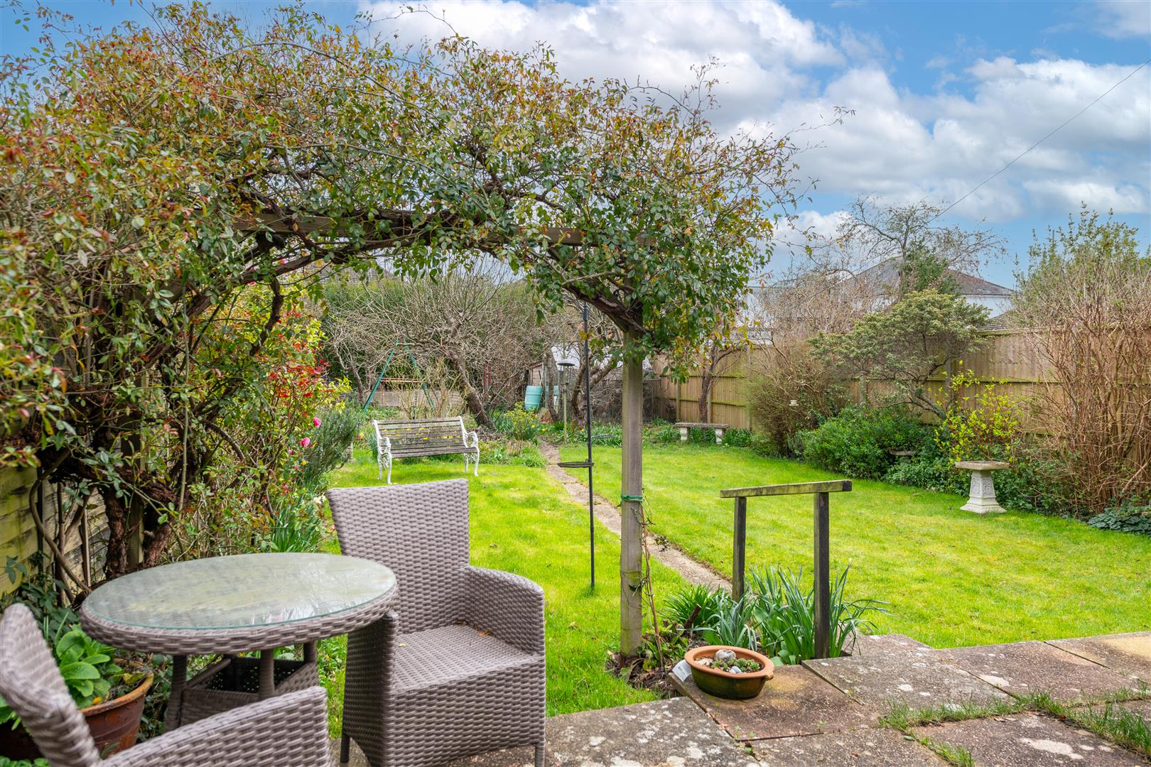 Generous Garden with Patio, Garden Shed & Greenhouse