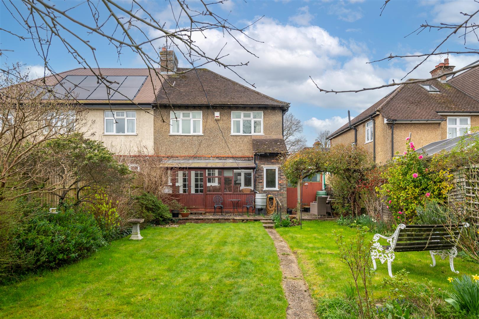 This semi-detached family house is situated in a popular residential neighbourhood within walking distance of the town centre and is offered to the market with no onward chain. The property requires modernisation and offers the opportunity to be converted into a contemporary family home with scope for the addition of a side or rear extension, as well as a loft conversion, subject to planning. The accommodation consists of an entrance hallway with storage and a guest cloakroom. To the front of the property is a spacious living room with feature bay window, high ceilings, picture rails and an electric fireplace. To the rear is a separate dining room with French Doors leading into a lean-to extension that provides direct access to the garden. Downstairs is completed by a galley style kitchen which also provides external access and features white cabinetry, decorative splashback tiling and standalone appliances. Upstairs consists of three bedrooms, family bathroom, separate toilet and loft storage. The two double bedrooms are generous in size, one of which includes integrated storage, while the third bedroom is a large single. The bathroom has been adapted and features a double walk-in shower enclosure with a separate WC situated along the landing. The external aspects include a driveway with parking for multiple vehicles, a storm porch and a single garage. The rear garden includes a patio, area laid to lawn, mature planting and a vegetable garden to the rear complete with greenhouse and potting shed. Location is always key and it is no exception here as the property is walking distance to the recreation ground, local schools as well as the bustling town of Horley, which offers residents a great mix of local amenities and excellent transport links. Gatwick is only 10 minutes away and Horley station provides fast services to London and the south coast.