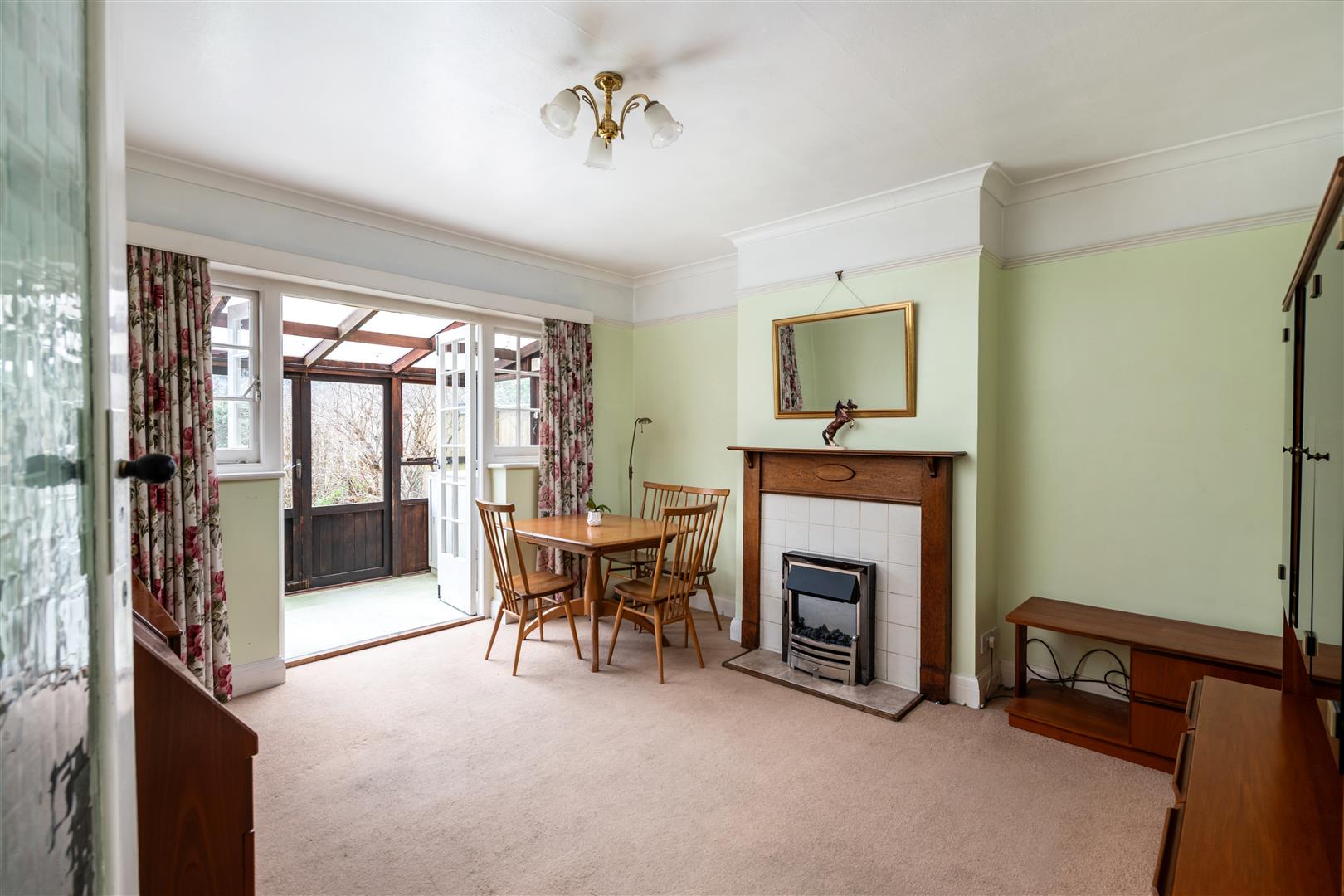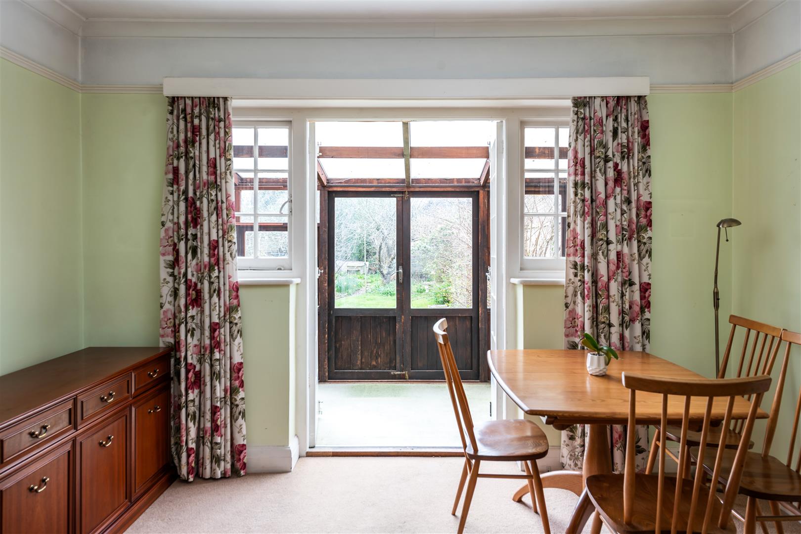 Separate Dining Room with French Doors Opening into a Lean-to Extension