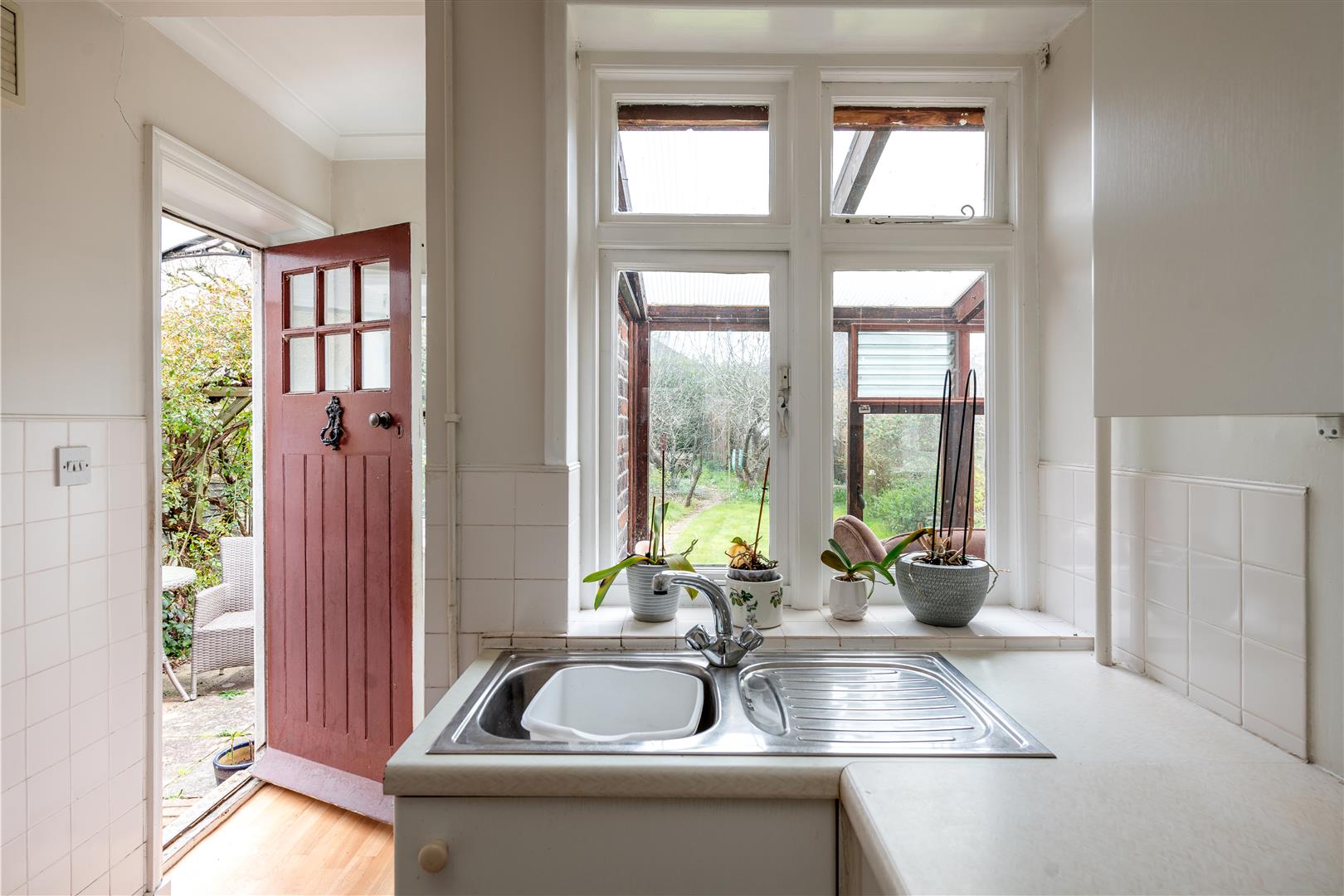 Galley Style Kitchen with direct access to the Garden