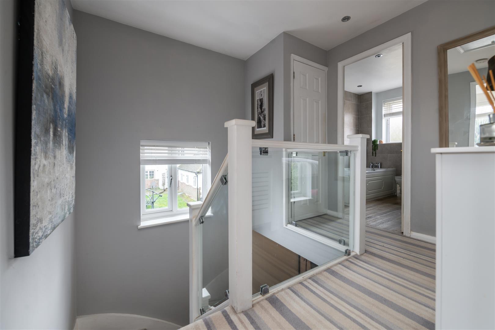 This impressive, detached family home offers a perfect blend of comfort and modern living. The property is situated in a quiet cul-de-sac and is offered to the market with NO ONWARD CHAIN. The property offers generous accommodation over two floors. The ground floor features an abundance of reception space, comprising a spacious formal living room, a converted garage currently being used as a home office and a wonderful conservatory spanning the entire width of the house. The conservatory provides direct access to the south facing rear garden, creating a seamless transition between inside and out. There is also a kitchen featuring integrated appliances and bay window as well as a guest cloakroom. The stairwell leading upstairs features a stylish glass balustrade. There are three bedrooms located on the first floor, two of which are doubles that benefit from fitted wardrobes with one also including an ensuite shower room. An elegant bathroom with contemporary floor to ceiling grey tiles serves the other two bedrooms on this floor. The upper floor is completed with loft storage that is equipped with loft ladder and is fully boarded. Externally, this freehold property also has the added benefit of a tarmac driveway offering space for four vehicles, a storm porch and side access to the private patio rear garden, which has been landscaped and features a covered entertainment area equipped with heating, a bar and useful utility area offering additional storage provision. Location is always key and it is no exception here as this property falls within the catchment area for several schools and is walking distance of the bustling town of Horley, which offers residents a great mix of local amenities and excellent transport links. Gatwick is only 10 minutes away and Horley mainline station provides fast services to London and the south coast.