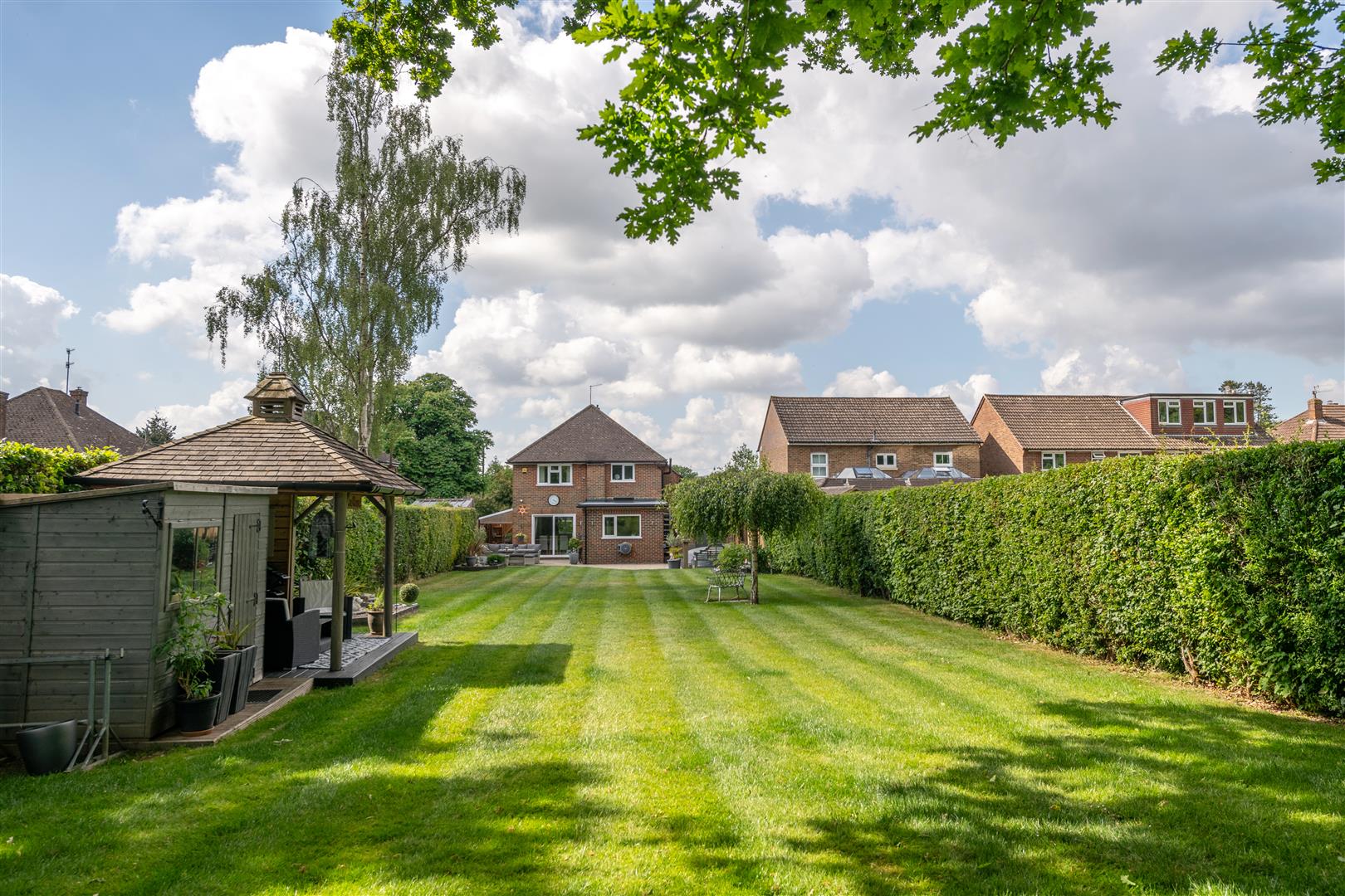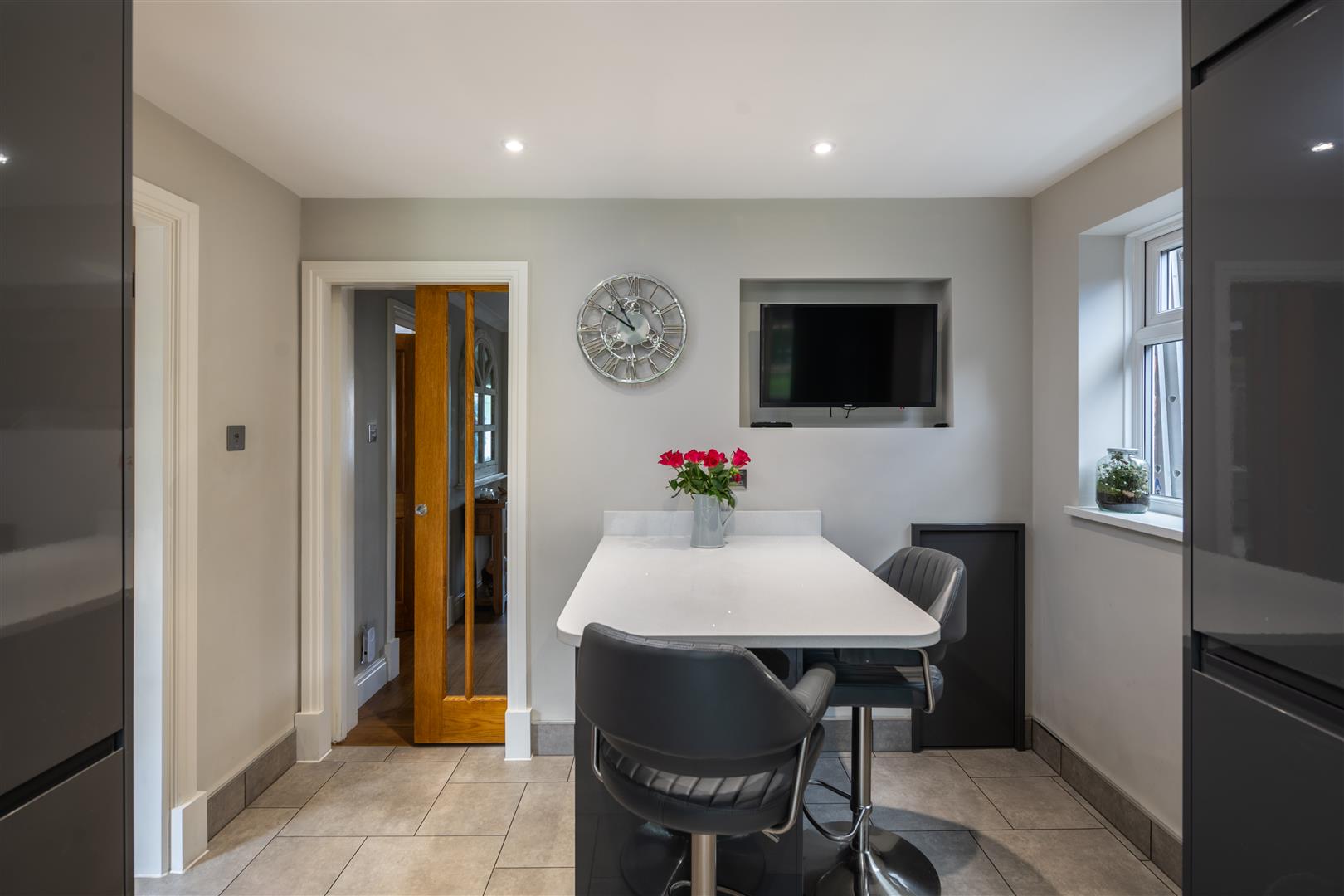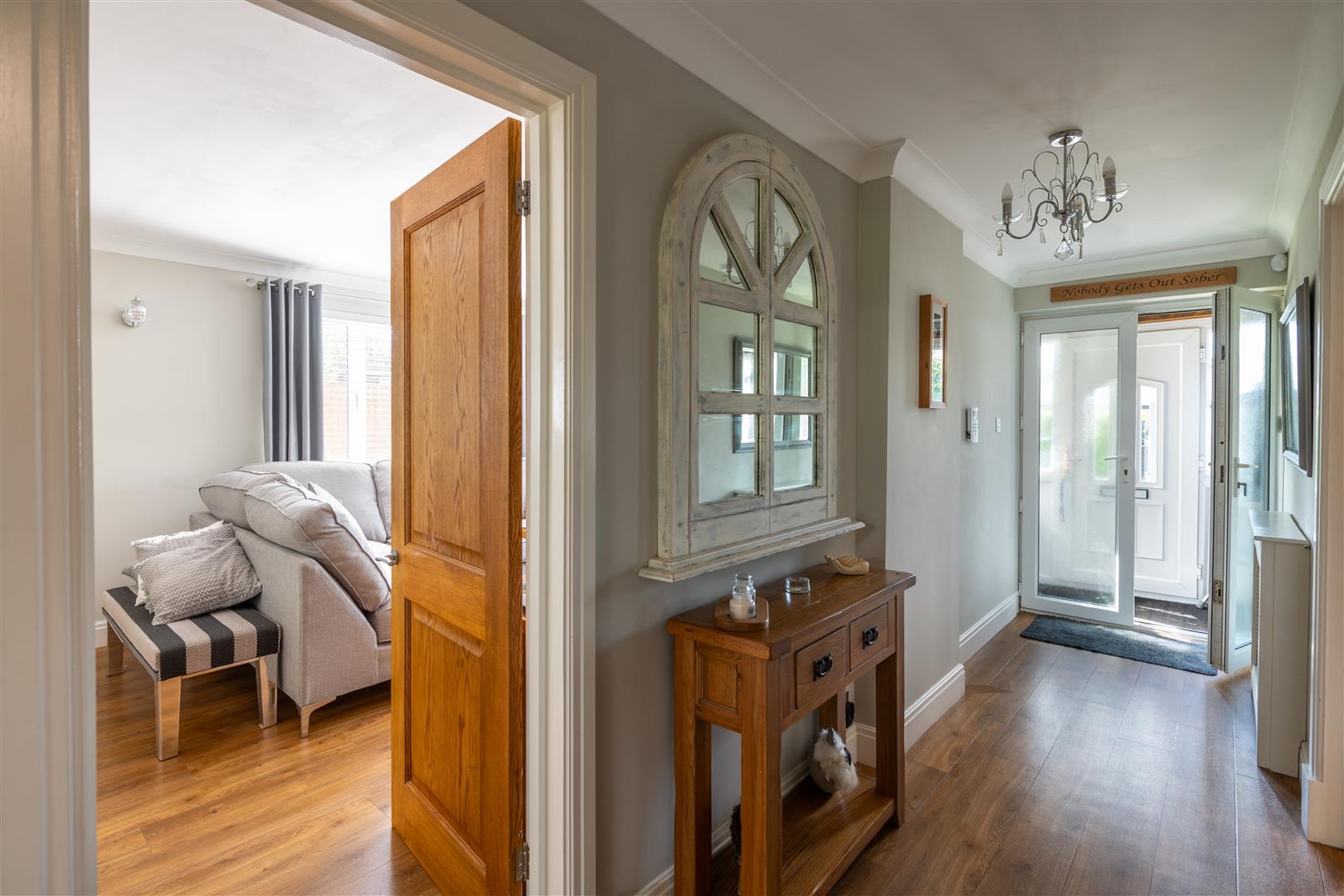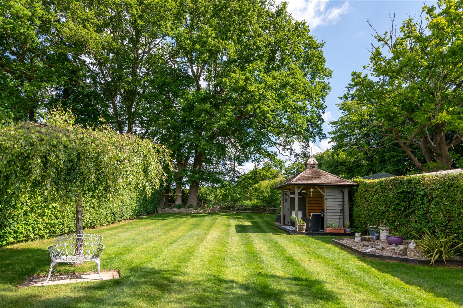 This immaculately presented detached family home offers a perfect blend of modern living and charm. The property has been stylishly refurbished to a high finish and specification, ensuring comfort and elegance. The versatile accommodation allows for either three reception rooms or four bedrooms, catering to your individual needs and preferences. The downstairs layout includes an entrance porch, internal hallway with newly refurbished guest cloakroom, a home office or fourth bedroom to the front and a spacious triple aspect lounge/diner, which boasts a working fireplace, creating a warm and inviting atmosphere for family gatherings or entertaining guests. The heart of the home is undoubtedly the modern kitchen, equipped with breakfast bar, integrated appliances, stylish charcoal gloss cabinetry and adorned with stunning quartz worktops. Amtico Spacia flooring and solid oak internal doors throughout the property add a touch of sophistication and warmth. Upstairs features three generously sized double bedrooms, providing ample space for relaxation and privacy. The well-appointed bathroom complements the home's overall design and includes decorative tiling, elegant sanitary ware and a separate quadrant shower. Loft storage completes the upper floor, which provides ample scope for a loft conversion subject to obtaining the usual planning consents. Set behind a gated drive, the house enjoys a large, expansive garden backing onto open fields that is perfect for outdoor living. The private patio area is ideal for al fresco dining, while the summer house and external home office/hobby room, complete with power and lighting, offer additional space for hobbies or relaxation.With parking for multiple vehicles, this property combines practicality with style, making it an excellent choice for families or those seeking a peaceful retreat. This delightful home is walking distance to the village centre, which offers a range of local services.