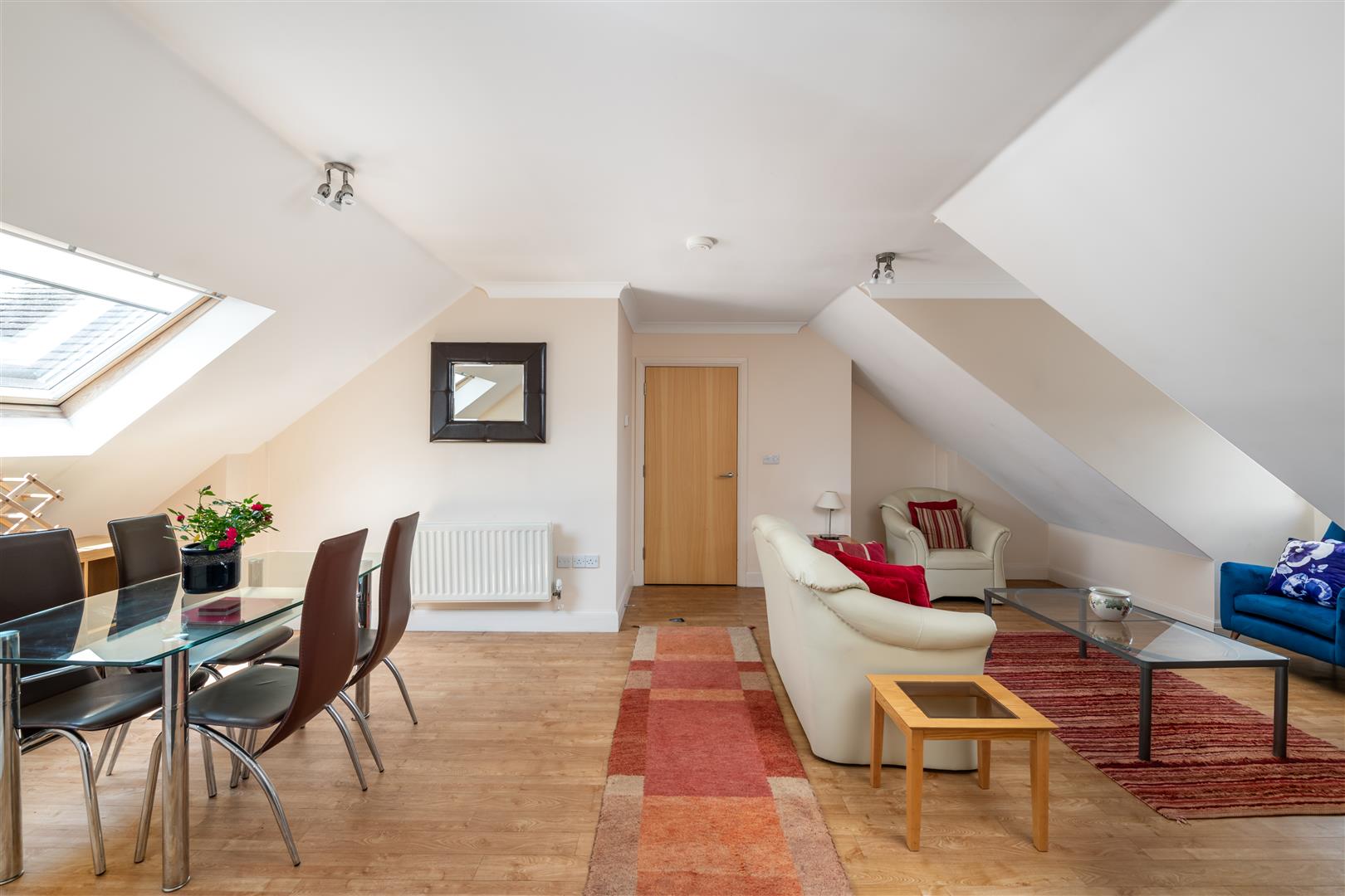 This attractive and spacious top floor penthouse apartment offers seclusion and privacy. Situated in a highly sought-after development close to the town centre, it is offered to market with NO FORWARD CHAIN. The Quadrangle is a modern development that benefits from a gated carpark, secure entry system and impressive communal grounds including a central courtyard with feature fishponds and landscaped gardens. This apartment is ideal for either first time buyers, who would be stamp duty exempt, as well as investors and commuters due its proximity to the mainline station and airport. Of added attraction is the fact the property benefits from a good length lease, allocated parking and has been stylishly decorated by the current owner who has also upgraded the apartment with the addition of a new boiler and Mega flow system, new fridge, new hob and new fitted blinds for all windows. The apartment benefits from an entrance hall with Karndean flooring that is continuous throughout with the exception of the kitchen. The accommodation features two double bedrooms, each with fitted storage. The impressive dual aspect lounge/diner is open plan offering contemporary living and leads onto a separate kitchen area that benefits from tiled flooring, Velux window, decorative splashback tiling and integrated appliances including gas hob, oven, dishwasher, washing machine and fridge/freezer. The apartment is completed by eaves storage and a spacious bathroom with corner bath and a separate quadrant shower with a new Aqualisa shower unit. This property is in the heart of the thriving town of Horley, which offers residents an excellent mix of local amenities. The town offers excellent transport links. Gatwick is only 10 minutes away and Horley mainline railway station provides services to London and the south coast.
